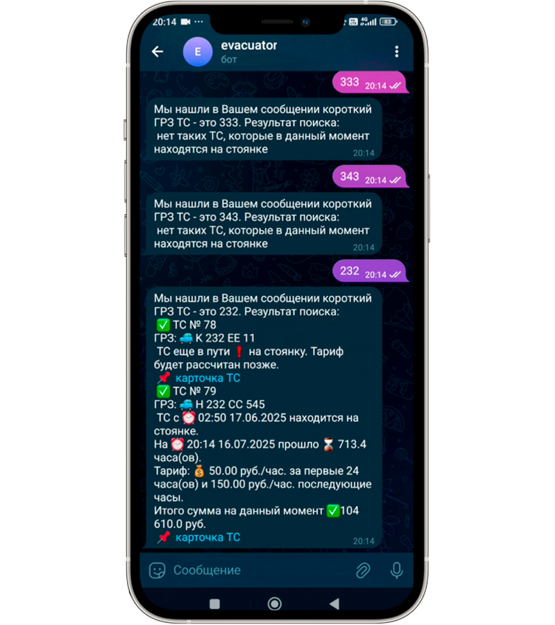 IT cистема для штрафстоянок и эвакуаторов в Telegram ботe
